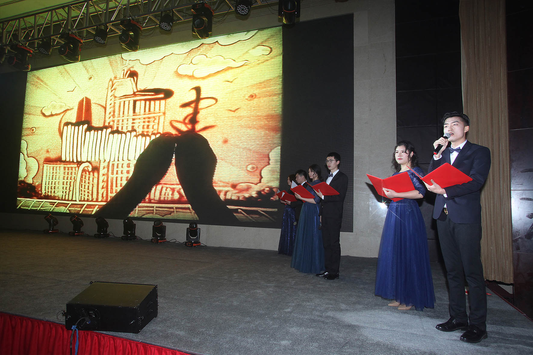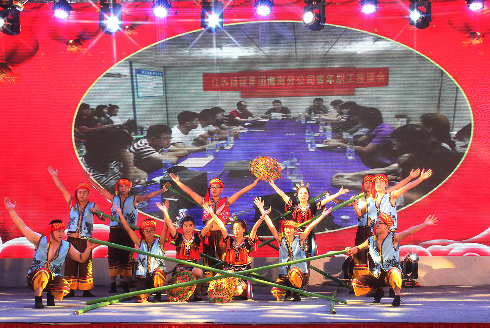 本次團(tuán)拜會由陳宏、周薇、何萱、馮晨4位同志聯(lián)袂主持,在集團(tuán)總部火熱喜慶的開場舞《恭喜發(fā)財(cái)》中拉開了序幕。市政公司舞蹈《絲路之歌》帶著大家走進(jìn)了兩千多年前古絲路開拓的恢宏歷史,音樂快板《砥礪前行揚(yáng)風(fēng)帆》體現(xiàn)出周材公司服務(wù)集團(tuán)主業(yè)的奉獻(xiàn)精神;二公司合唱《祖國不會忘記》讓我們共同見證著集團(tuán)65載的風(fēng)雨和輝煌,樁基公司詩音畫《不忘初心》,又讓大家感受了揚(yáng)建人、樁基人的堅(jiān)守和執(zhí)著;海南工程處黎族竹竿舞《黎海起航》帶來了不一樣的民族風(fēng)情,建祥公司舞蹈《自豪的建設(shè)者》展現(xiàn)出基層服務(wù)單位的昂揚(yáng)與向上;小品《臺前幕后》讓我們看到了安裝環(huán)保公司暖心的人文關(guān)懷,集團(tuán)總部溫情演繹的歌舞《父親》感恩了每一名建設(shè)者、每一個父親對家庭、對事業(yè)的責(zé)任、擔(dān)當(dāng)和愛;華達(dá)地產(chǎn)公司奉獻(xiàn)的沙畫朗誦《詩畫揚(yáng)建》,讓大家在詩畫之中重溫了集團(tuán)的歲月歷程,設(shè)備公司的三句半《鋼筋鐵骨見高度》用幽默的方式展現(xiàn)出設(shè)備人這個團(tuán)結(jié)的集體;這邊北方公司的歌舞《拼搏青春》剛剛讓我們感受了鋼鐵般的戰(zhàn)斗意志,那邊舞臺劇《匠心》就讓我們又領(lǐng)略到華發(fā)公司對品牌和質(zhì)量的不懈追求;四公司雅致音樂書法表演《琴韻墨香》讓我們品味著中華傳統(tǒng)文化藝術(shù)的魅力,一公司歌舞《國家》激起了我們的拳拳赤子心,把國和家的責(zé)任與榮譽(yù)刻入心田!十余項(xiàng)節(jié)目精彩紛呈,各單位精心籌備,發(fā)揮專業(yè)特色,融合民族舞蹈、傳統(tǒng)樂器、沙畫等藝術(shù)元素,獻(xiàn)上一場視聽盛宴,展示出揚(yáng)建大家庭昂揚(yáng)奮進(jìn)、勇于創(chuàng)新、多才多藝的精神面貌。