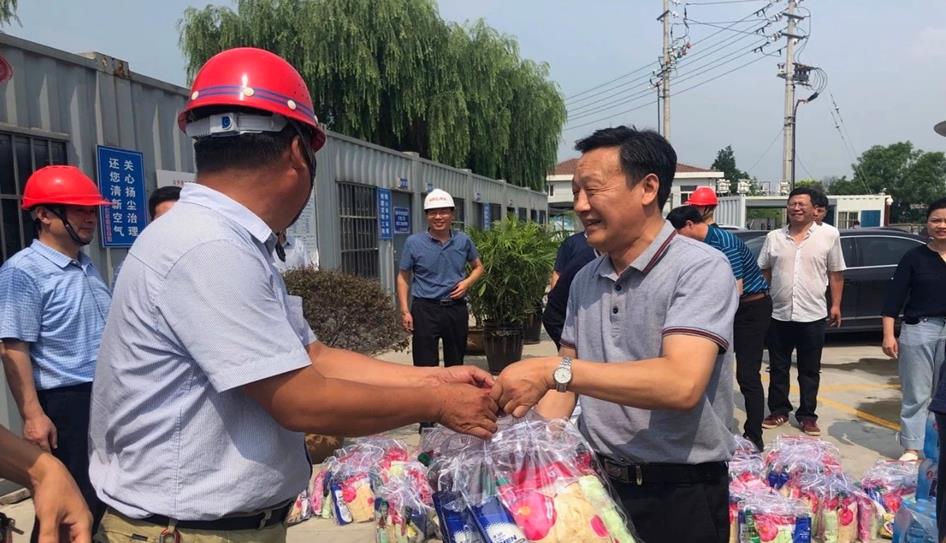 揚(yáng)建網(wǎng)訊 7月24日上午,揚(yáng)州市總工會(huì)副主席朱明、中共揚(yáng)州市紀(jì)律檢查委員會(huì)常委、秘書(shū)長(zhǎng)陳鈞、揚(yáng)州市城建國(guó)有資產(chǎn)控股(集團(tuán))有限責(zé)任公司總經(jīng)理葉善祥、揚(yáng)州市市政建設(shè)處主任呂秀龍等領(lǐng)導(dǎo)一行,慰問(wèn)了我集團(tuán)承建的揚(yáng)州監(jiān)察廉政教育基地?cái)U(kuò)建工程醒園二期項(xiàng)目部全體員工,給他們送去防暑降溫慰問(wèn)品和職工勞動(dòng)保護(hù)手冊(cè),讓堅(jiān)守在高溫生產(chǎn)一線(xiàn)的職工們實(shí)實(shí)在在感受到工會(huì)組織的關(guān)愛(ài)。