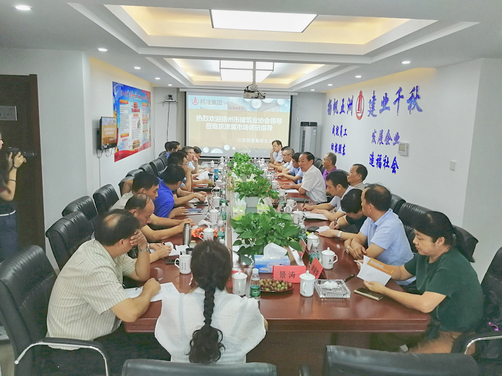揚(yáng)建網(wǎng)訊 8月19~21日,揚(yáng)州市建筑業(yè)協(xié)會一行來津開展京津冀和雄安新區(qū)市場調(diào)研。市建筑業(yè)協(xié)會會長任壽松率華建、揚(yáng)建、邗建等揚(yáng)州市11家特級資質(zhì)企業(yè)董事長或總經(jīng)理、各縣(市、區(qū))協(xié)會會長共25人參加調(diào)研,我集團(tuán)董事長曹德榮參加調(diào)研活動。