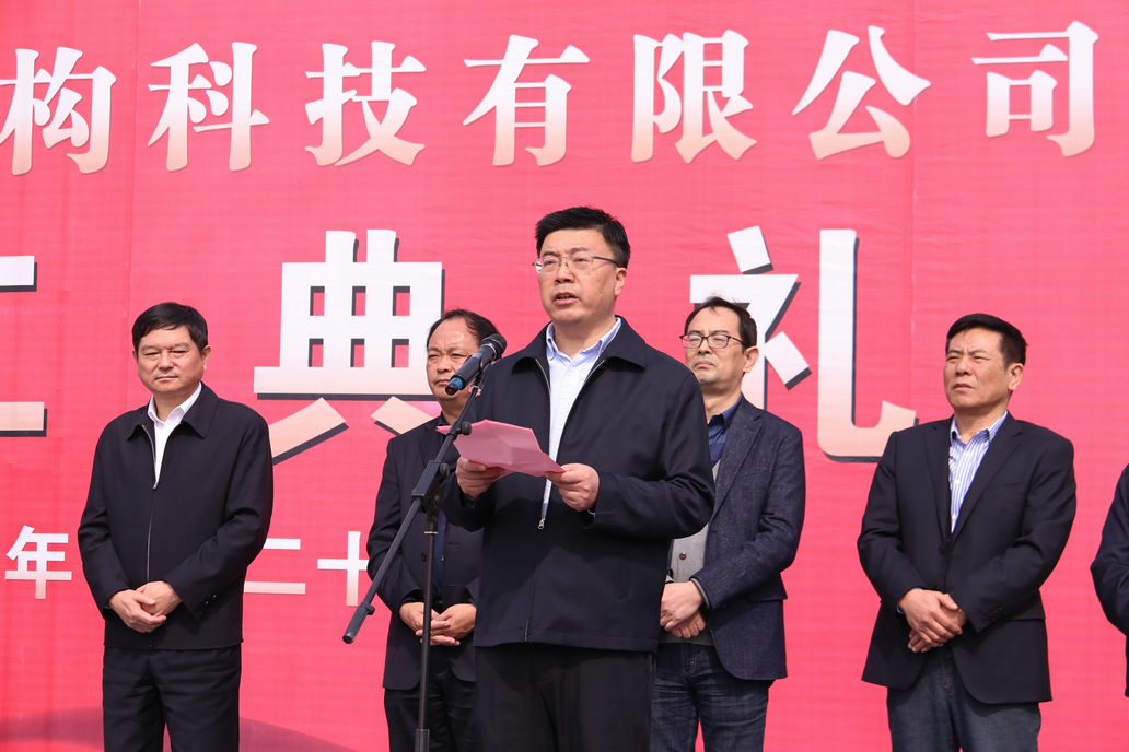 王吉騫、劉長(zhǎng)榮兩位領(lǐng)導(dǎo)也分別代表市建工控股公司及儀征市開發(fā)區(qū)管委會(huì)致辭。對(duì)鋼構(gòu)科技公司項(xiàng)目順利開工表示祝賀,并對(duì)公司未來發(fā)展表示了期許,同時(shí)對(duì)于打造綠色示范基地、在確保生產(chǎn)安全的情況下高效率、高質(zhì)量完成項(xiàng)目提出了期望。