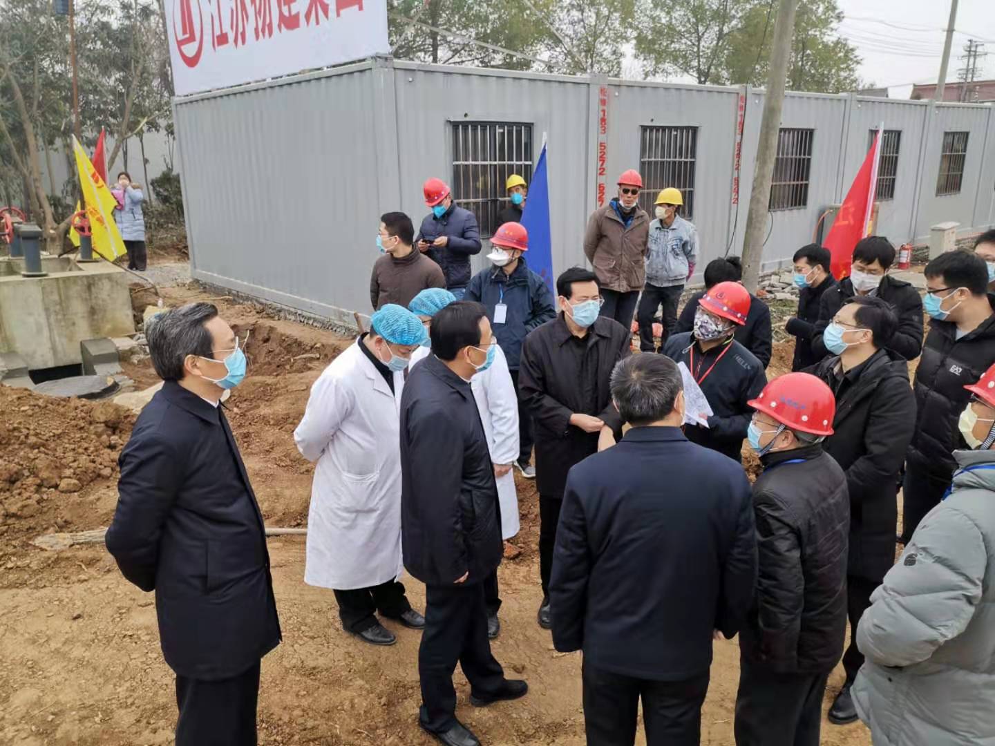 項目開工以來,得到了市委市政府領(lǐng)導(dǎo)的關(guān)懷。2月6日上午,國務(wù)院應(yīng)對疫情防控工作指導(dǎo)組、揚(yáng)州市委夏心旻書記、張寶娟市長、市委常委韓鏵秘書長何金發(fā)副市長、業(yè)主及建工控股的領(lǐng)導(dǎo)分別來項目一線檢查指導(dǎo)。夏書記詳細(xì)詢問了“蒼頡山”工程的規(guī)劃設(shè)計及進(jìn)展情況,對揚(yáng)建鐵軍沖鋒在抗擊疫情第一線的擔(dān)當(dāng)精神給予高度肯定,同時叮囑所有項目參建人員做好自我防護(hù),同心協(xié)力、科學(xué)施工,按期完成突擊建設(shè)任務(wù),為我市乃至全國抗疫戰(zhàn)爭貢獻(xiàn)力量。