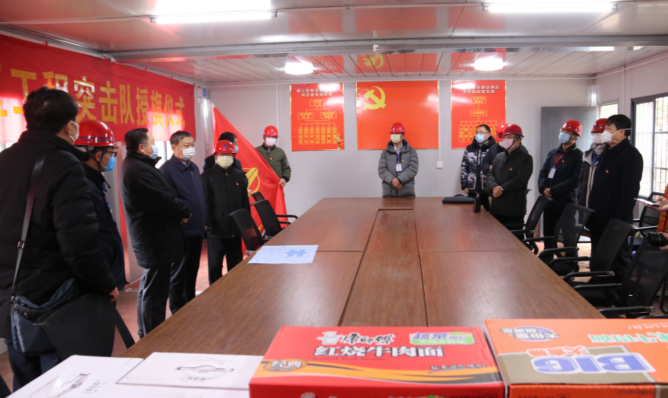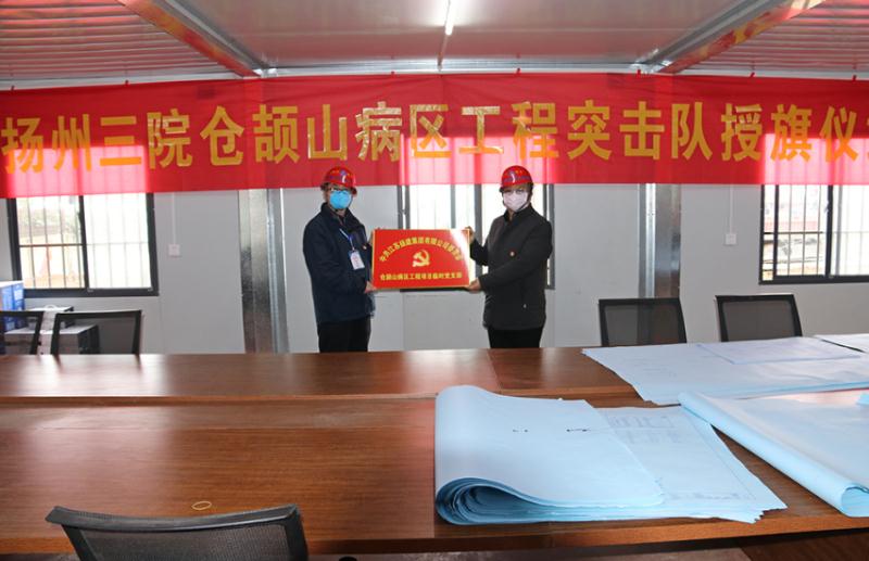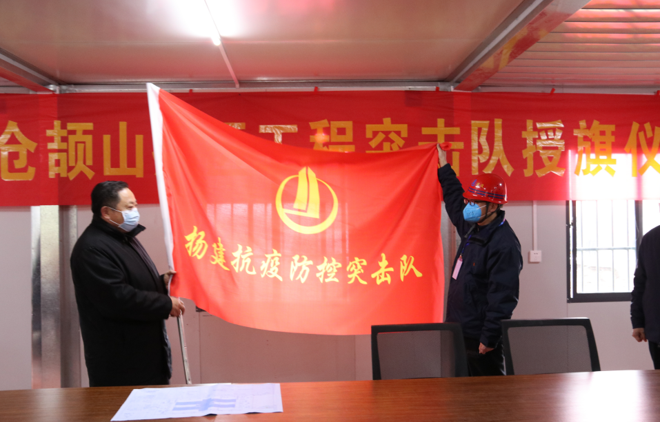 王主任在向我集團蒼頡山病區(qū)項目臨時黨支部書記、揚建抗疫防控突擊隊隊長郝敬東授旗,并希望揚建抗疫防控突擊隊能夠克服一切困難,始終發(fā)揚揚建人特別能吃苦、特別能戰(zhàn)斗、特別能奉獻的精神,牢固樹立龍頭企業(yè)的使命意識、擔當意識,確保高質量、高效率完成市委市政府交辦的建設任務,為疫情防控做貢獻。