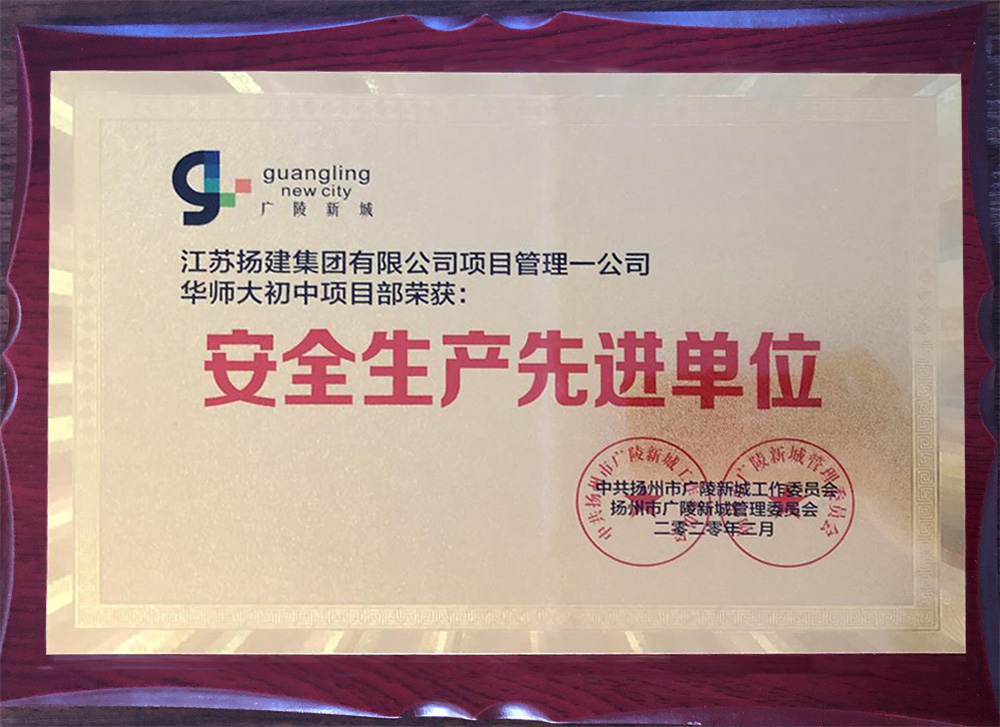 其中,江蘇揚建集團有限公司榮獲“重大項目建設(shè)獎(廣陵教育文化產(chǎn)業(yè)基地)”,華師大初中項目部榮獲“安全生產(chǎn)先進單位”。