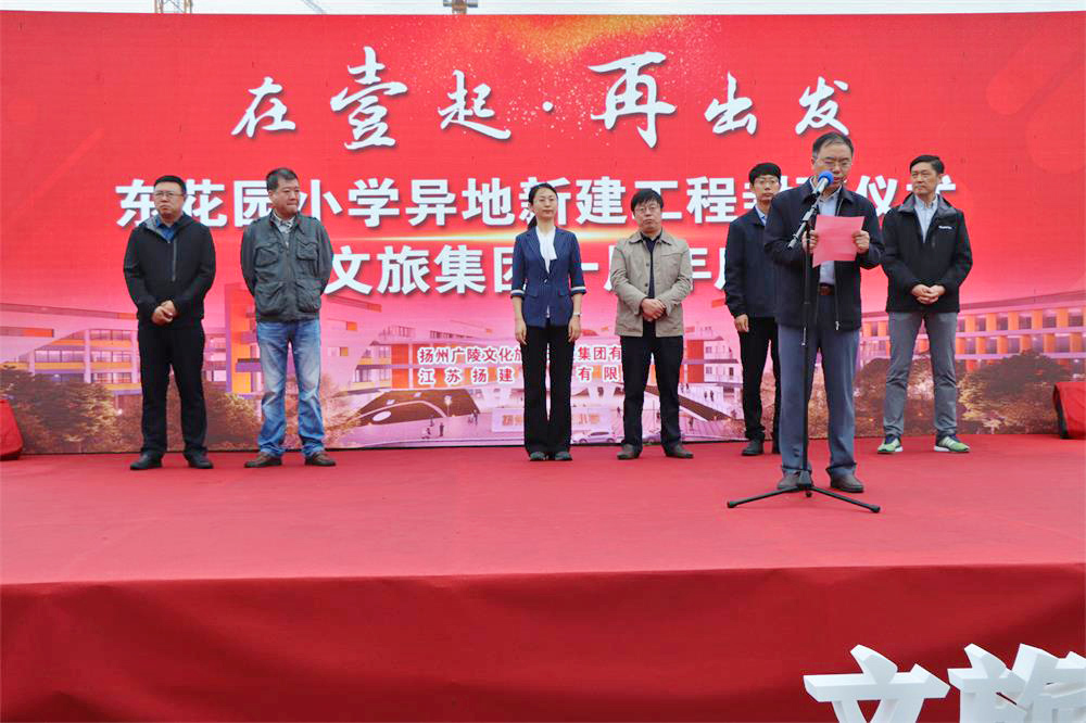 揚(yáng)建網(wǎng)訊 5月30日上午,由我集團(tuán)EPC總承包施工的東花園小學(xué)異地新建項(xiàng)目教學(xué)樓、綜合樓封頂儀式在項(xiàng)目現(xiàn)場隆重舉行。廣陵區(qū)副區(qū)長萬瀟瀟、區(qū)教體局局長葉健、文旅集團(tuán)董事長王宇翔、揚(yáng)建集團(tuán)總經(jīng)理鄒厚存、副總陳寶中和相關(guān)參建單位人員參加活動(dòng)。文旅集團(tuán)、揚(yáng)建集團(tuán)、區(qū)教體局主要負(fù)責(zé)人先后致辭?;顒?dòng)現(xiàn)場還播放了東花園異地新建項(xiàng)目專題視頻。
