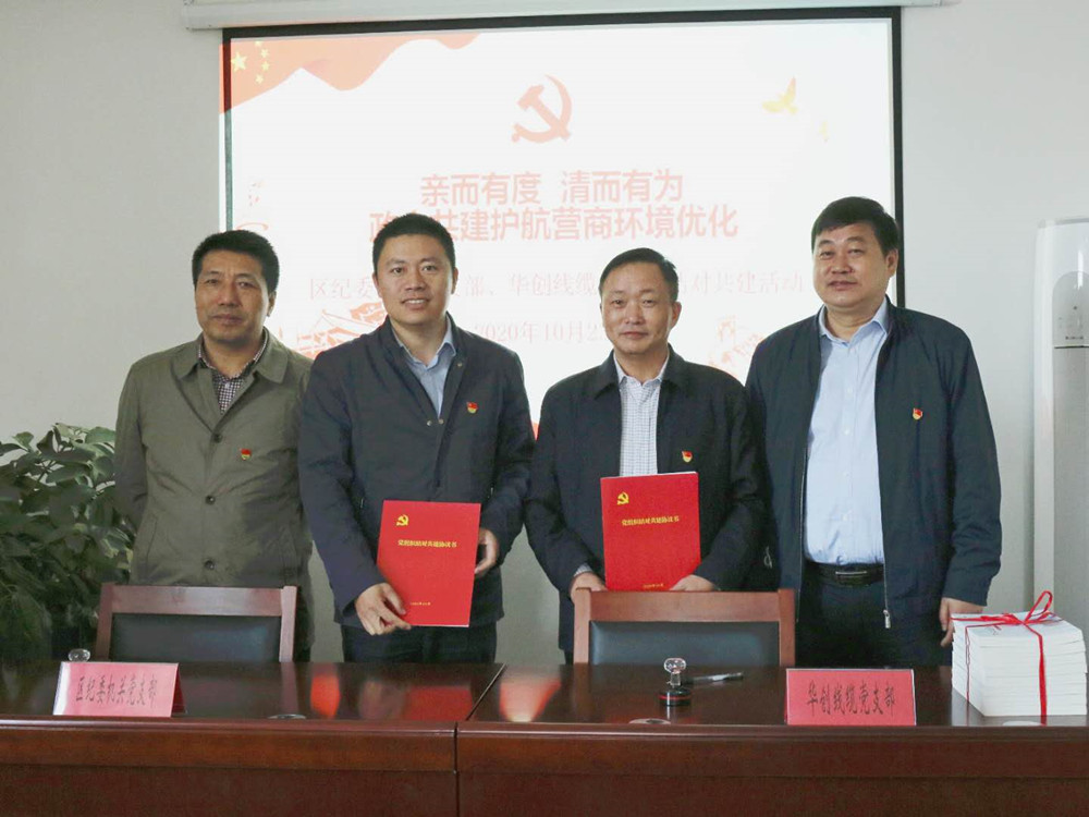 康往東書記和徐明書記先后在儀式上致辭。雙方領(lǐng)導(dǎo)對這次政企結(jié)對共建給予了高度評價??禃浽谥罗o中對華創(chuàng)支部工作提出了幾點要求:一是要提升政治素養(yǎng)、不斷提升自我凈化、自我完善、自我革命、自我提高的能力;二是要培植傳統(tǒng)友誼,兩支部要增加互動、增進了解,建立長效的共建結(jié)對機制,為雙方互學(xué)共進打好基礎(chǔ);三是要取得共建成效,大力推進“廉文化”建設(shè),為企業(yè)健康有序發(fā)展提供政治保障。