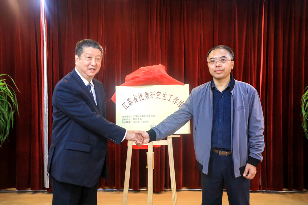 首先,研究生院王莉副院長(zhǎng)主持了授牌揭牌儀式,揚(yáng)州大學(xué)黨委常委、副校長(zhǎng)陳國(guó)宏與集團(tuán)總經(jīng)理鄒厚存共同為“江蘇省優(yōu)秀研究生工作站”揭牌并合影留念。