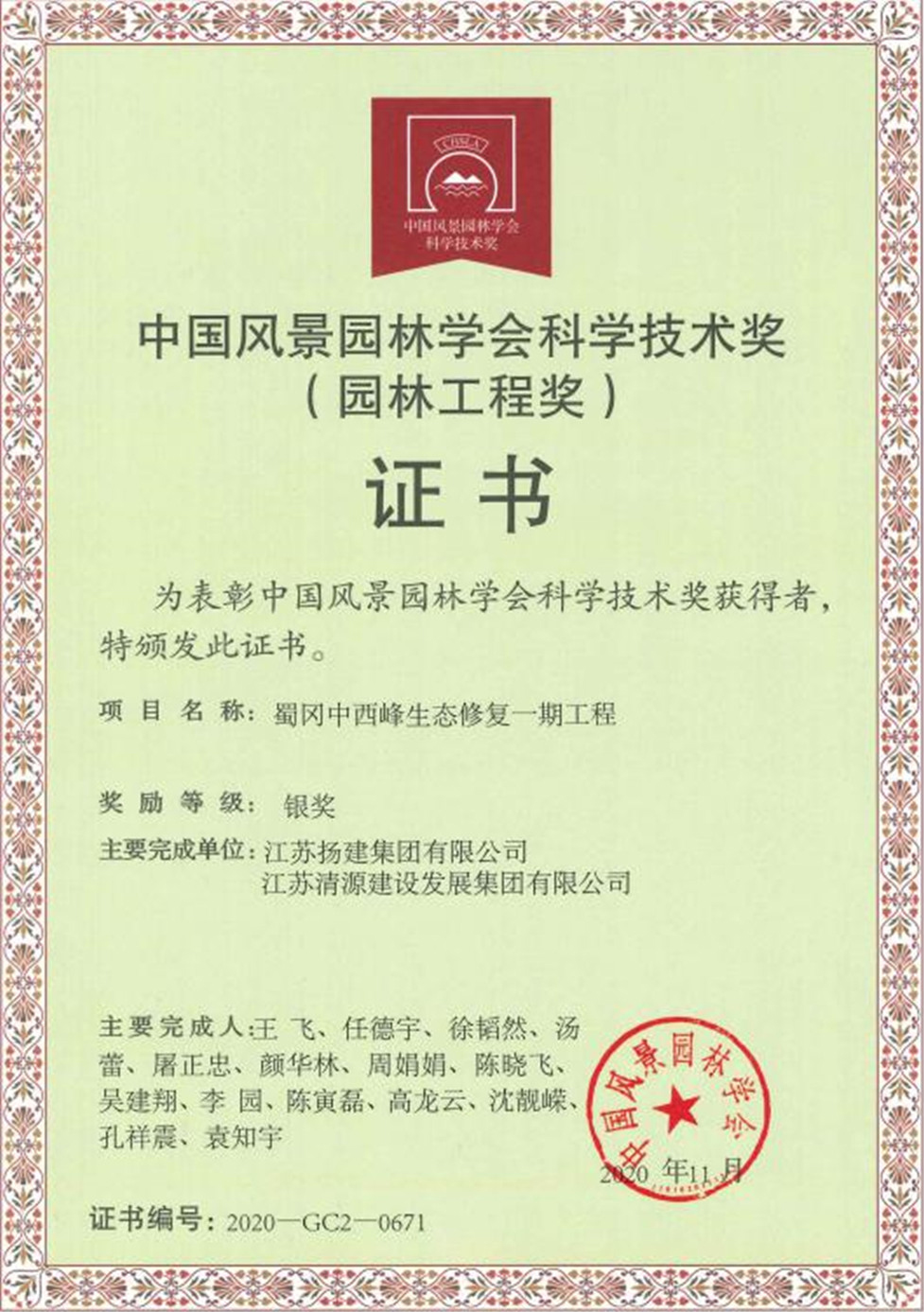 揚建網(wǎng)訊 近日,集團公司主申報的“蜀岡中西峰生態(tài)修復一期工程”獲得了中國風景園林學會授予的“2020年度中國風景園林學會科學技術獎(園林工程獎)銀獎”。風景園林科技獎獎勵對象為在推動我國風景園林各領域科技進步、科技創(chuàng)新和科技推廣中做出突出貢獻的單位和個人,該獎項也是集團公司施工的園林綠化項目在風景園林科技領域獲得的最高獎項。