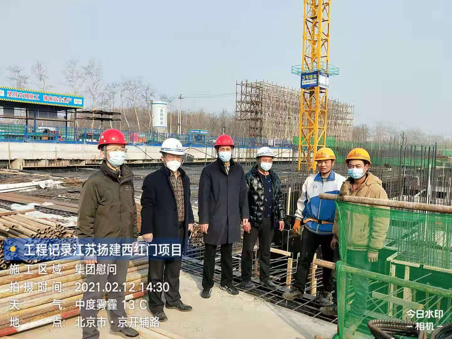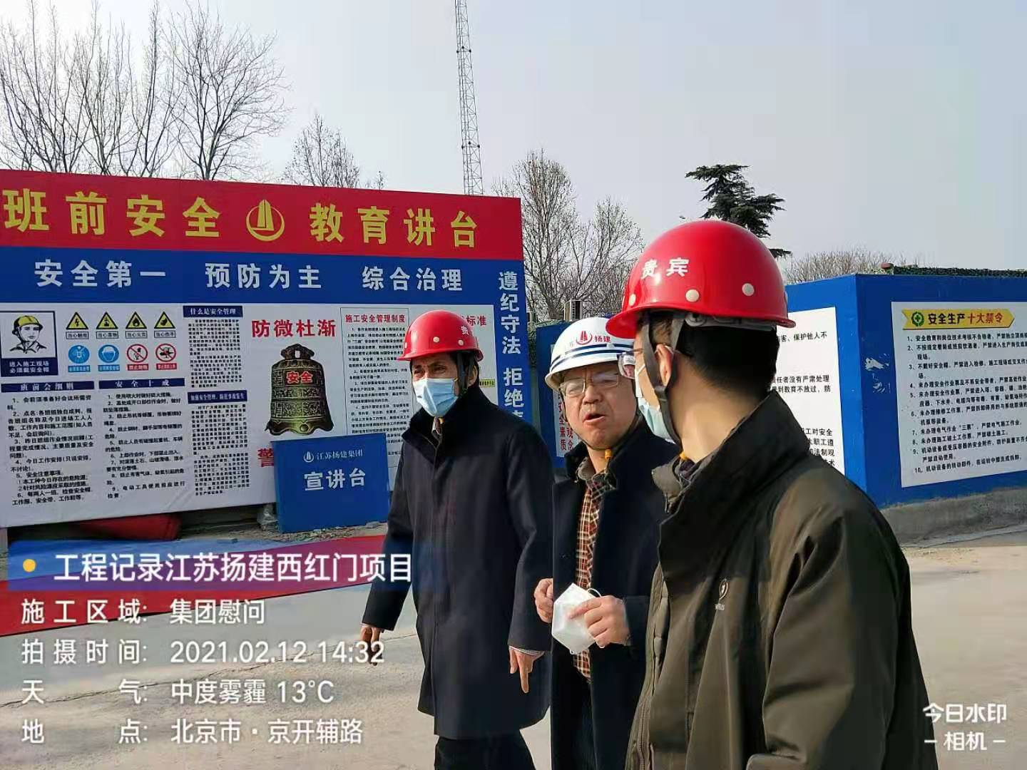 揚建網(wǎng)訊 2月12日,農(nóng)歷大年初一,正是萬家團聚、喜慶佳節(jié)的時候,江蘇省人民政府駐北京辦事處建筑管理處處長錢明、副處長程剛走進北京熙悅宸著項目部,看望慰問春節(jié)期間響應國家就地過年號召、仍奮戰(zhàn)在一線的400多名揚建建設者,為在寒冷冬日下堅守在生產(chǎn)一線的建設者們送上暖心年貨。北方公司副總經(jīng)理吳勇陪同慰問。