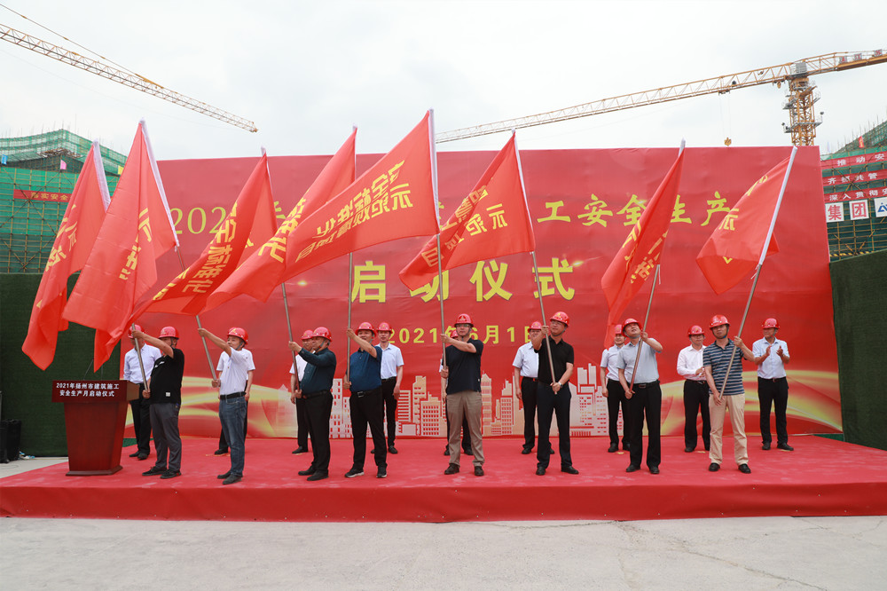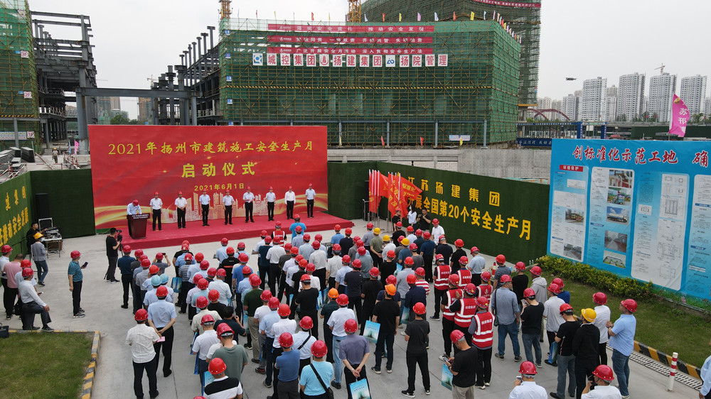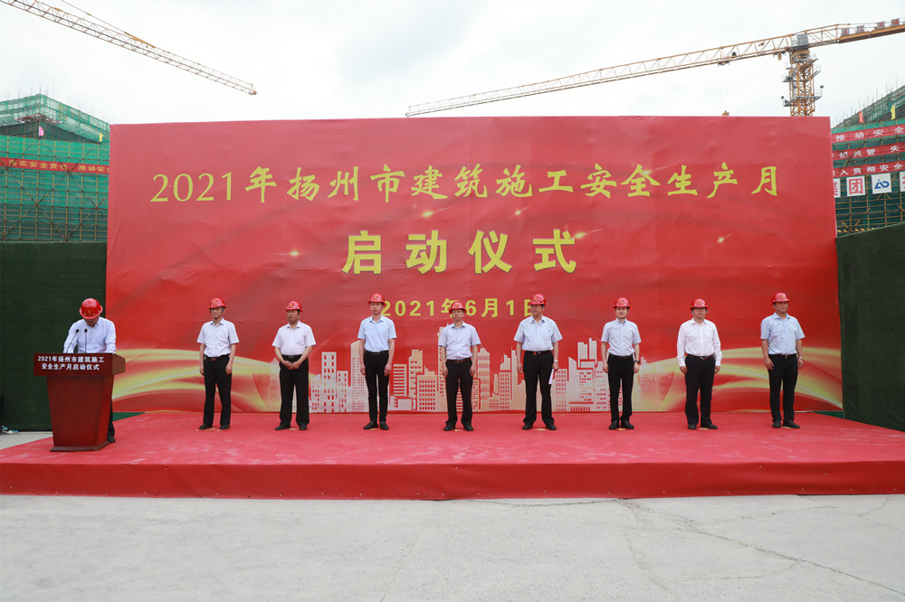 啟動(dòng)儀式上,陶伯龍局長(zhǎng)解讀了2021年揚(yáng)州市建筑施工“安全生產(chǎn)月”活動(dòng)文件;頤和公司、揚(yáng)建集團(tuán)、揚(yáng)州建筑設(shè)計(jì)院分別代表建設(shè)單位、施工單位、監(jiān)理單位作了交流發(fā)言;我集團(tuán)安全監(jiān)督部朱曉軍部長(zhǎng)代表?yè)P(yáng)建頤和項(xiàng)目上臺(tái)受旗。