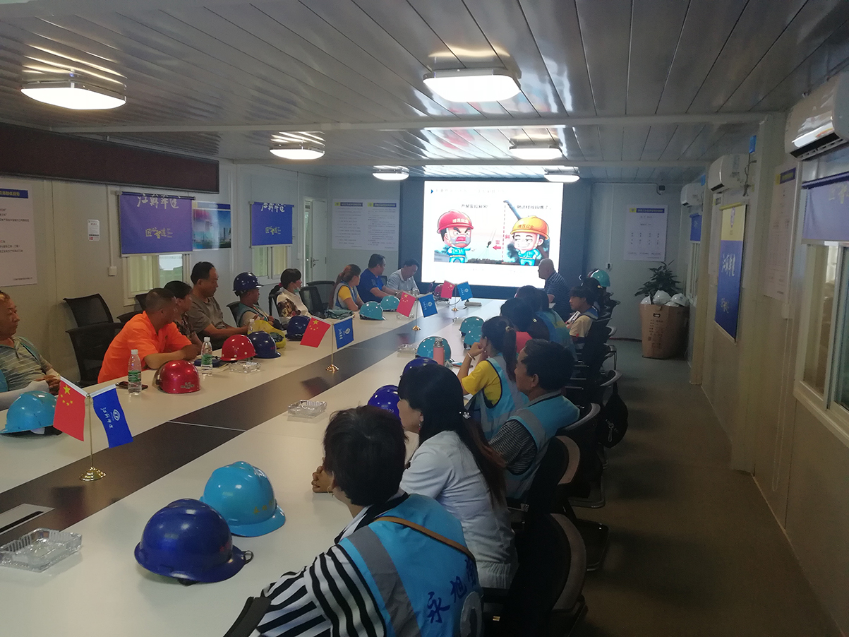 在本次主題系列活動中,分公司安全生產(chǎn)科首先組織了項目部現(xiàn)場操作人員“安全生產(chǎn)”主題會議,通過幻燈片方式逐一講解安全知識,結合自身的工作崗位,做好各自的安全防范工作,強化安全意識。