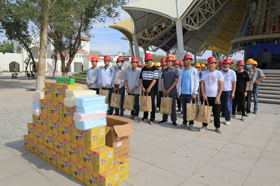 揚(yáng)建網(wǎng)訊 7月14日至20日,集團(tuán)理事會(huì)主席曹德榮、工會(huì)主席孔凡裕等一行五人先后來(lái)到北方公司天津招商公園1872項(xiàng)目、新疆分公司西部烏鎮(zhèn)項(xiàng)目慰問一線施工人員,為冒著酷暑?yuàn)^戰(zhàn)在一線的項(xiàng)目部管理人員、施工人員送去了飲料等防暑降溫用品。