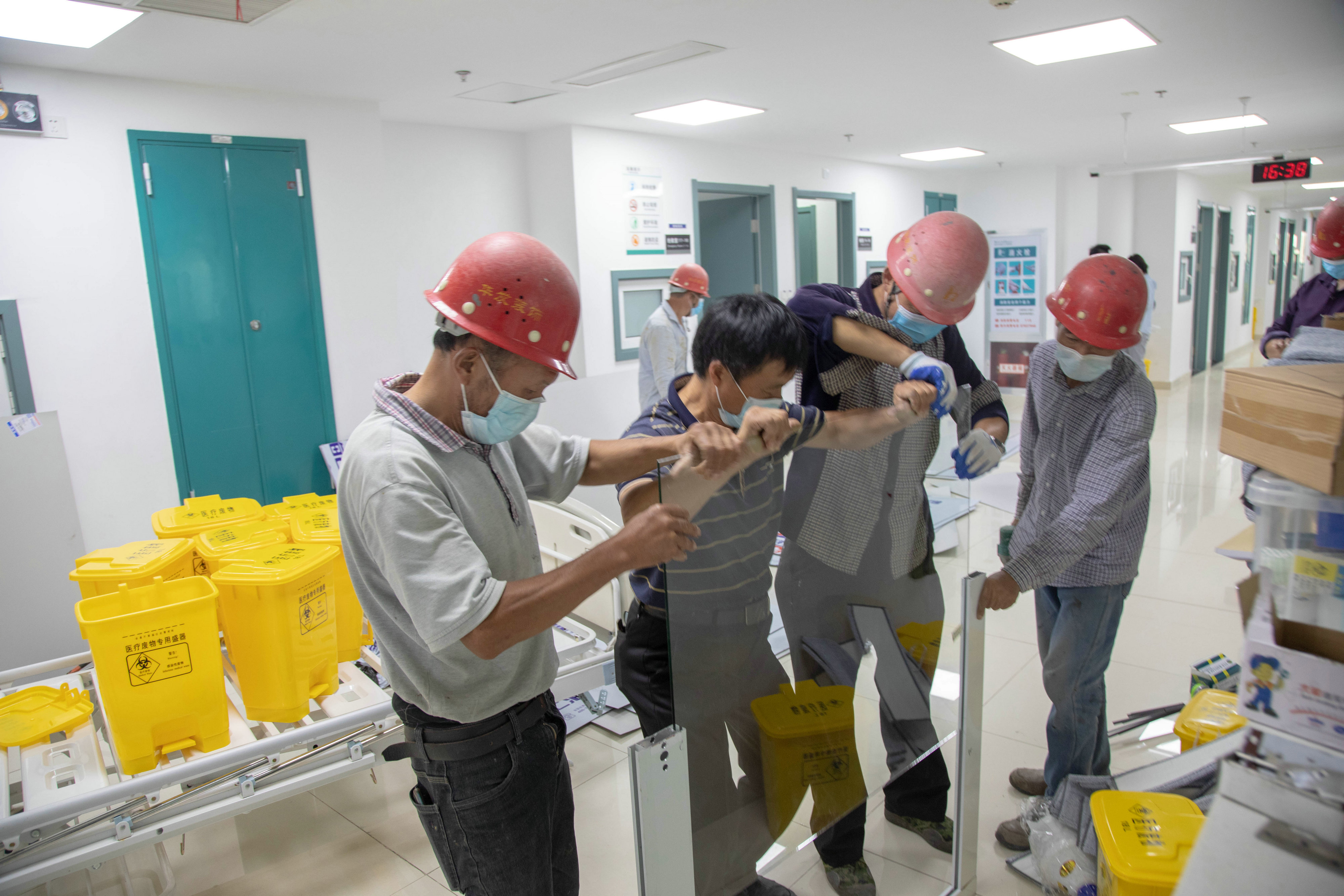 就在4日晚8點即將完工時,這時院方又臨時下達了新的工作任務——再加兩個隔斷和幾十米的護欄安裝,天亮前必須完成。王學金同志隨即通知華發(fā)基地連夜加急趕工生產(chǎn),凌晨12點制作完成后立即拖回材料現(xiàn)場安裝。經(jīng)過42個小時的通宵奮戰(zhàn),終于在5日早晨完成了全部任務。完成交付任務時,駐扎在市三院的國家衛(wèi)計委專家組對施工質(zhì)量給予了肯定。任務完成后,施工人員們并沒有立即回家休息,而是原地待命,防止還有其他突發(fā)應急任務。