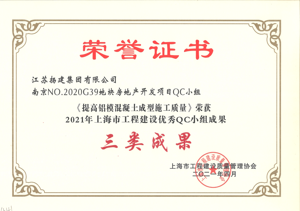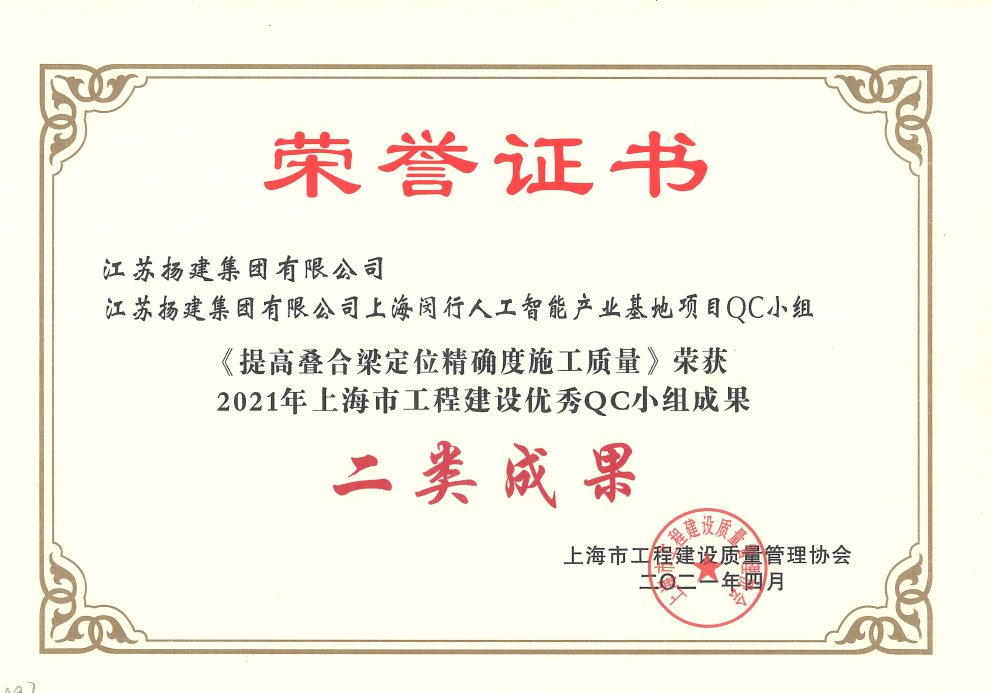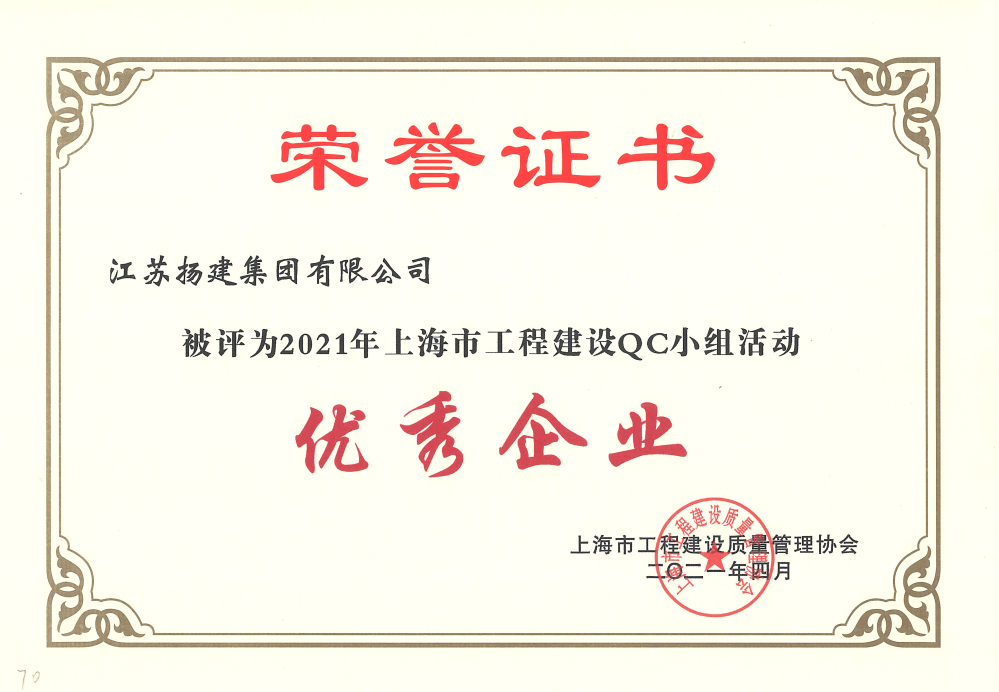 揚(yáng)建網(wǎng)訊 日前在上海結(jié)束的2021年度上海市工程建設(shè)優(yōu)秀QC小組成果評審會上,在通過江蘇省滬辦建管處層層選拔、推薦申報后,經(jīng)上海市工程建設(shè)質(zhì)量管理協(xié)會質(zhì)量審定委員會審定,江蘇揚(yáng)建集團(tuán)有限公司再次獲評上海市工程建設(shè)QC小組活動優(yōu)秀企業(yè)。