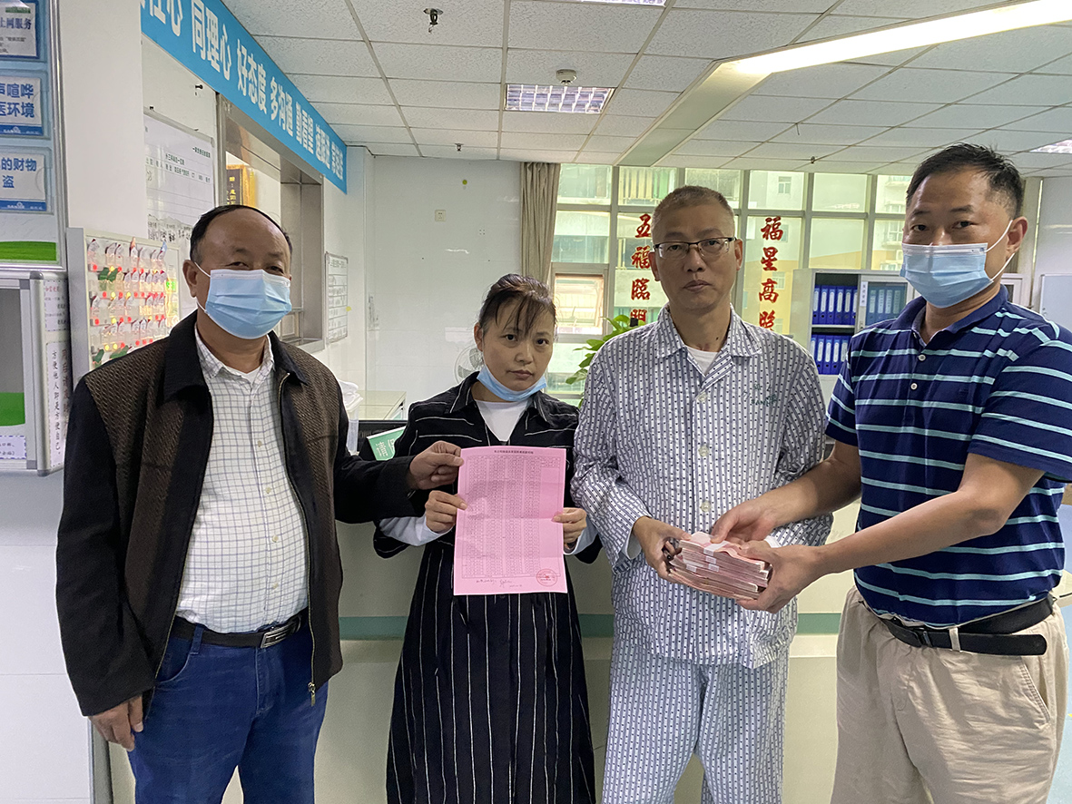 病魔無情人有情,在了解到鄭志明家庭實際困難情況之后,深圳工程處黨支部聯(lián)合工會分會立即發(fā)出對鄭志明家庭的愛心捐款倡議書,并在第一時間得到了工程處廣大職工的積極響應,短短兩日便籌得愛心捐款共計57490元。捐款活動結束后,工程處在第一時間將這筆愛心捐款送到鄭志明家屬手中,為面臨困難的家庭送去了力量和希望。