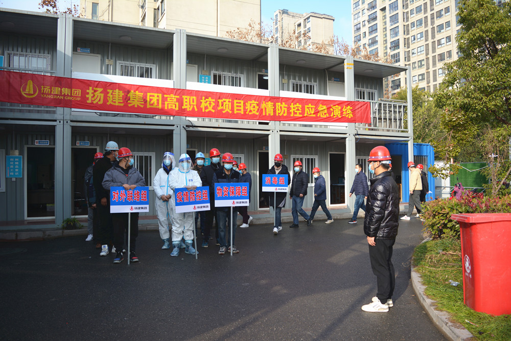 揚(yáng)建網(wǎng)訊 目前,國內(nèi)已有建筑工地發(fā)生疫情,疫情形勢(shì)依然嚴(yán)峻,為提高全體作業(yè)人員疫情防控意識(shí)和技能,有效應(yīng)對(duì)新型冠狀病毒肺炎疫情,了解疫情防控措施,12月16日,集團(tuán)項(xiàng)目管理三公司高職校項(xiàng)目部聯(lián)合建設(shè)(代建)單位、監(jiān)理單位、各分包施工單位一起開展了疫情防控應(yīng)急救援演練,科創(chuàng)集團(tuán)民興公司副總經(jīng)理陳宇、三公司常務(wù)副經(jīng)理蔣畢忠等參加了觀摩指導(dǎo)。