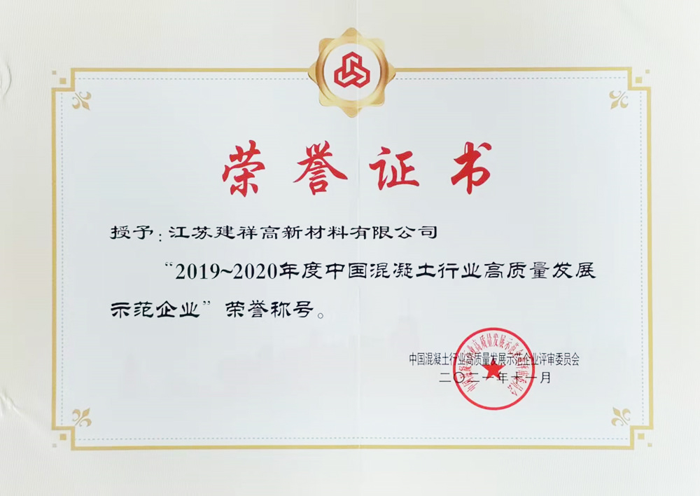 建祥獲評中國混凝土行業(yè)高質(zhì)量發(fā)展示范企業(yè)