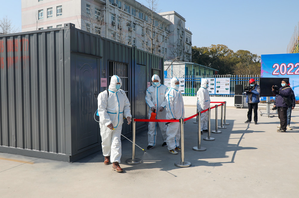 本次疫情防控應(yīng)急演練圍繞“外防輸入、內(nèi)防反彈”的工作任務(wù),預(yù)設(shè)工地現(xiàn)場分別發(fā)現(xiàn)一名人員行程碼異常和一名人員發(fā)燒。項(xiàng)目部立即啟動應(yīng)急預(yù)案,按照“快速反應(yīng)、快速到位、快速處置”的原則安排可疑人員在項(xiàng)目隔離室進(jìn)行隔離,并對其近期行動軌跡進(jìn)行登記調(diào)查;項(xiàng)目負(fù)責(zé)人第一時(shí)間將情況上報(bào)街道社區(qū)、建設(shè)單位、集團(tuán)公司和主管部門,隨后對施工現(xiàn)場出入口進(jìn)行封閉,轉(zhuǎn)移可疑人員,開展全面消殺,同時(shí)安排專人向職工解疑釋惑,保持職工思想穩(wěn)定。