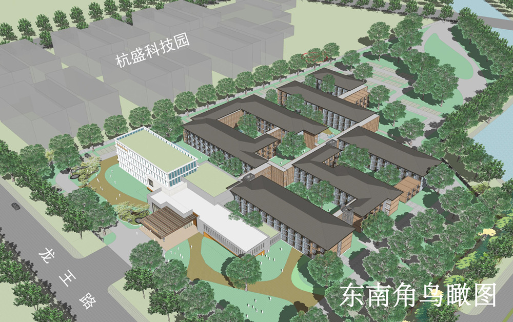 該項目位于328國道與金灣路交叉口西南角,地勢平坦;北側(cè)現(xiàn)有排澇河流,西側(cè)與杭盛工業(yè)園相鄰。項目占地約51畝,后期預(yù)備留用地約21畝,本期建設(shè)規(guī)模約3萬平方米,共建有500間客房和相關(guān)配套設(shè)施,防疫按照三區(qū)三通道的要求予以設(shè)計,主體建筑采用箱式結(jié)構(gòu)局部鋼結(jié)構(gòu)建造。該項目采用院落式布局,以3-4層的建筑通過連廊圍合形成形態(tài)各異的庭院空間,實現(xiàn)人與建筑、自然和諧共生,未來將作為杭集工業(yè)園區(qū)的配套公寓。