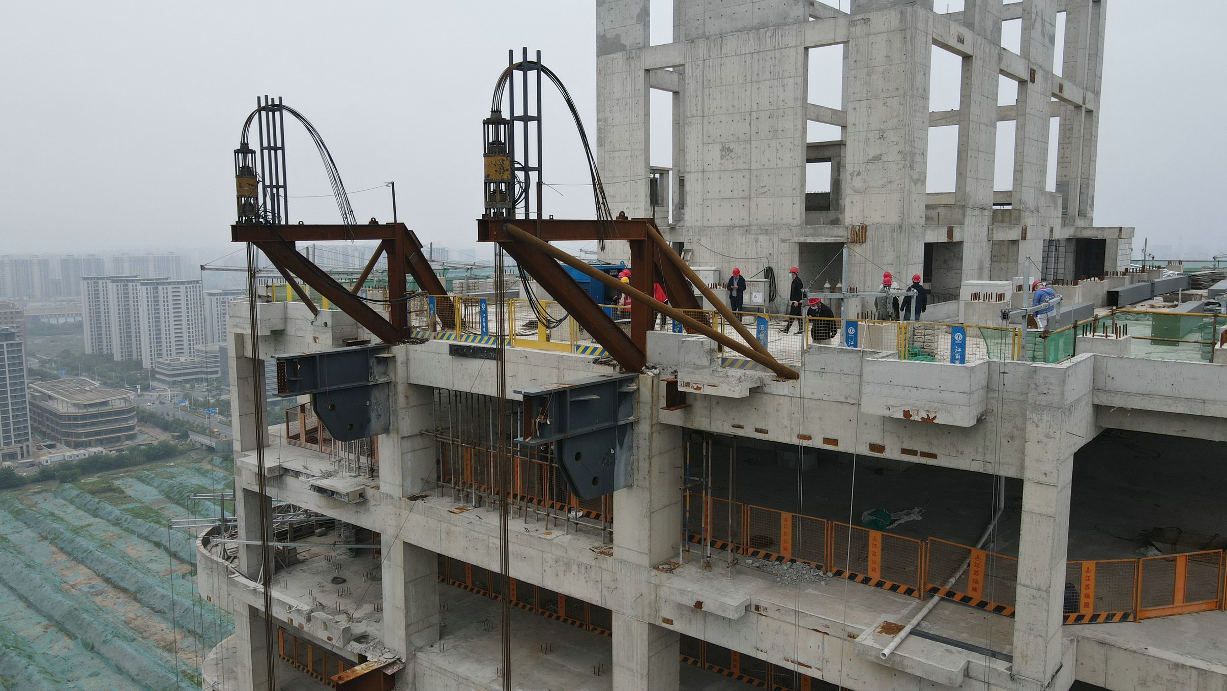 建工科技園鋼結(jié)構(gòu)連廊預(yù)提升順利完成