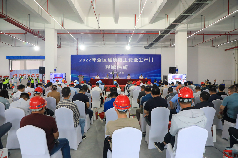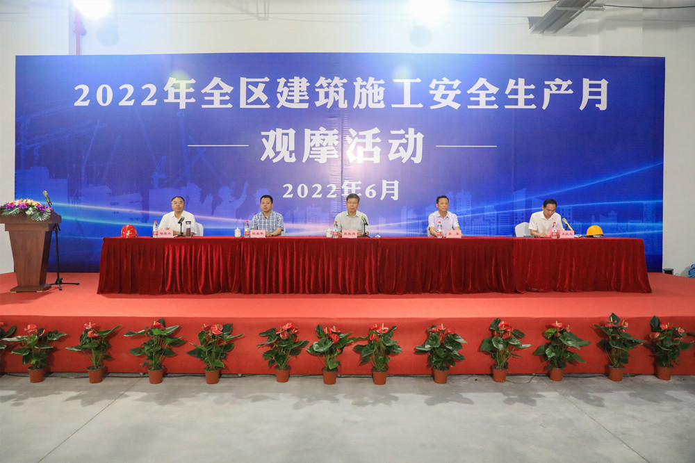 區(qū)質(zhì)安站副站長宣讀了2022年全區(qū)建筑施工“安全生產(chǎn)月”活動(dòng)方案;開發(fā)集團(tuán)代表董建明、揚(yáng)建集團(tuán)總經(jīng)理鄒厚存會(huì)上分別作了交流表態(tài)發(fā)言;區(qū)國有控股(集團(tuán))有限公司董事長張長海作了動(dòng)員講話;區(qū)建設(shè)局副局長李慶龍宣布了觀摩活動(dòng)的啟動(dòng)。