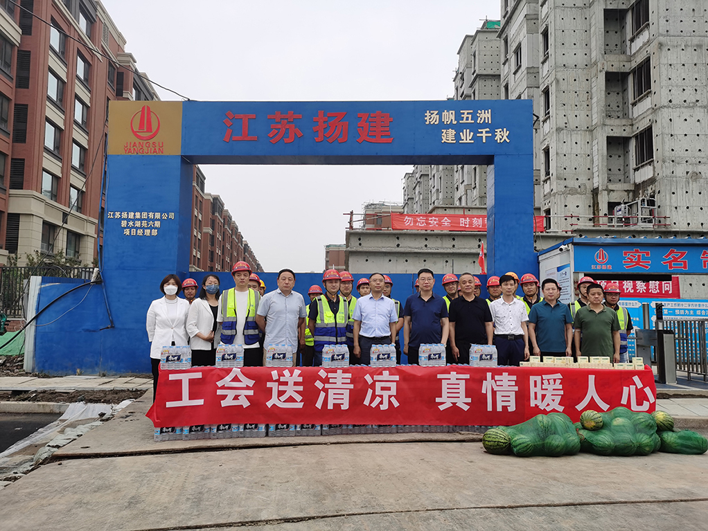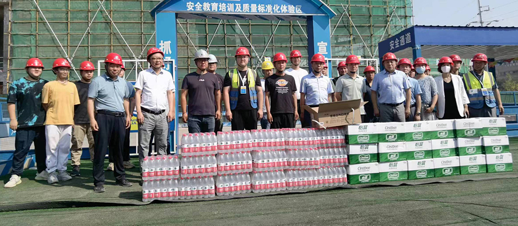 集團(tuán)工會(huì)主席劉海斌對冒著酷暑?yuàn)^戰(zhàn)在一線的項(xiàng)目人員表示了親切慰問,并要求各公司一定要調(diào)整好項(xiàng)目施工的作息時(shí)間,進(jìn)行錯(cuò)峰作業(yè),保證一線員工充分的休息時(shí)間,注意夏季食品安全,切實(shí)做好防暑降溫工作;并為大家送來防暑降溫飲料、水果及藥品。