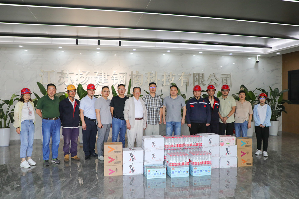 揚建網(wǎng)訊 盛夏時節(jié),氣溫炎熱。近期,集團(tuán)領(lǐng)導(dǎo)分批組織慰問了揚州及周邊市場GZ152地塊、職大科技綜合樓、人才科技大廈、GZ090地塊、儀征揚農(nóng)、南京NO.新區(qū)2021G11地塊、江寧2020G81地塊、十二圩健康驛站等工程項目及鋼結(jié)構(gòu)、華晟等生產(chǎn)基地,為克服夏季高溫、堅守一線崗位的施工人員送去了清涼和關(guān)懷。集團(tuán)工會、辦公室、董事會辦公室及相關(guān)單位負(fù)責(zé)同志參加了慰問活動。