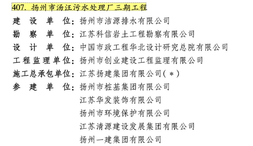 揚(yáng)建集團(tuán)湯汪污水處理廠三期工程榮獲國家優(yōu)質(zhì)工程獎