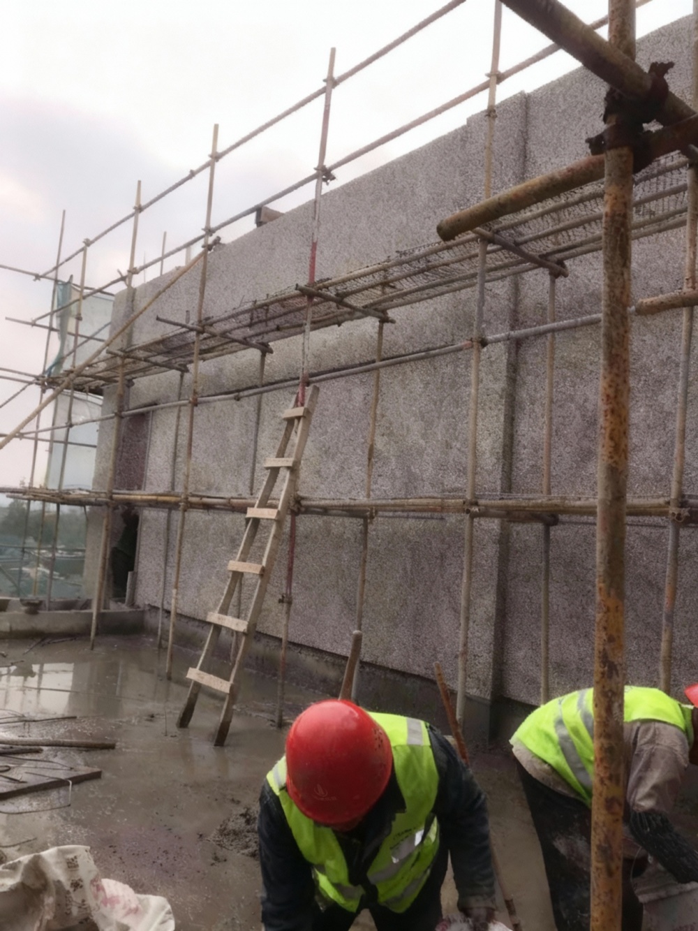 風(fēng)貌留存上,對傳統(tǒng)工藝的堅守近乎苛刻。為修復(fù)B#樓的水刷石墻面,團隊尋訪老手藝人,從石子篩選、材料攪拌到施工操作,每一步都嚴格把控,重現(xiàn)當(dāng)年質(zhì)感。小青磚墻加固采用隱蔽式技術(shù),橫峰豎向帶線確?;铱p順直,內(nèi)置鋼筋網(wǎng)片增強穩(wěn)定性,外觀卻依舊保留歲月痕跡。進口灰泥墻面由工人手工打磨,分區(qū)施工保障整體溫潤質(zhì)感,與老建筑氣質(zhì)契合。