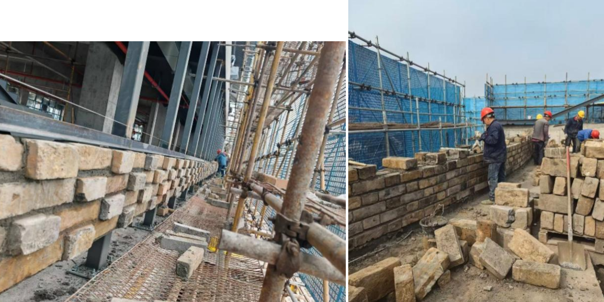 每一塊歷經(jīng)風(fēng)雨的青磚,都是小東門時代變遷最直接的“見證者”,其表面承載的歲月痕跡共同構(gòu)成了文物獨(dú)特的歷史信息與美學(xué)價值。保留它們,就是保留住了這面墻的靈魂和可信的“年齡感”。 項(xiàng)目團(tuán)隊采取保護(hù)原青磚,僅對磚縫進(jìn)行重做,最小的干預(yù),最大限度地保存了磚體本身。增設(shè)扶墻柱,以“借力”的方式增強(qiáng)其整體穩(wěn)定性。通過修復(fù)景觀墻、保留原青磚等“修舊如舊”的精細(xì)手法,以“?!笔刈v史本底,以“修”解決關(guān)鍵病害,以“固”賦予持久力量,最終實(shí)現(xiàn)“傳”承文脈的根本使命。