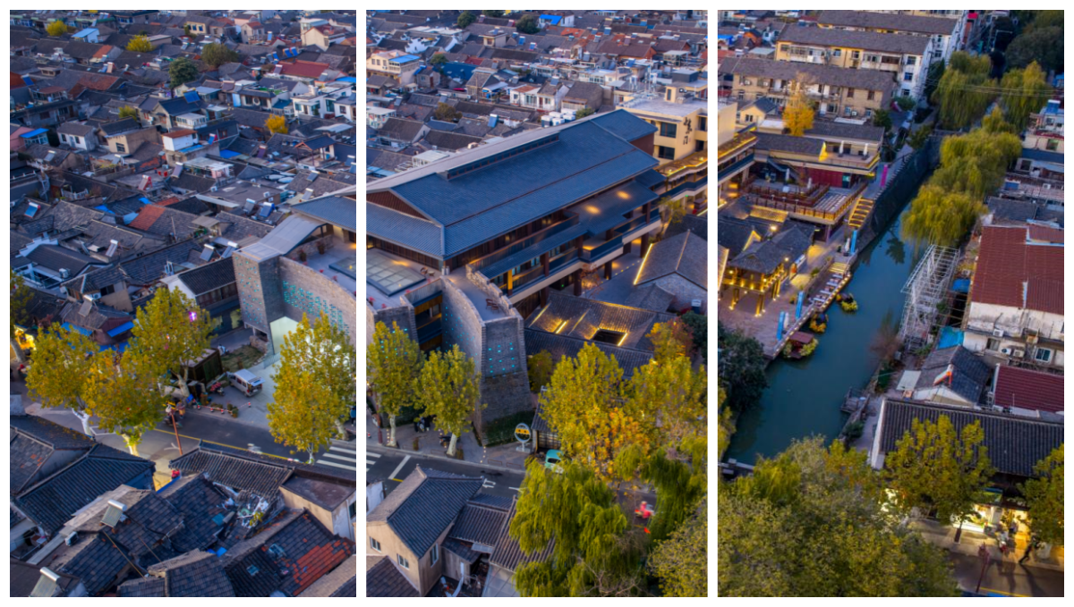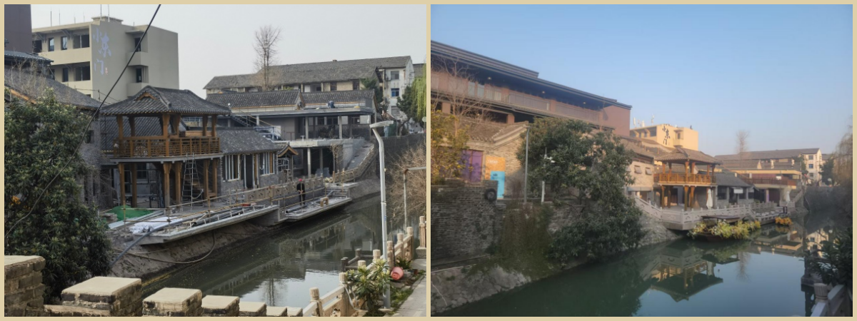 古城保護(hù)不是將歷史“封存”,而是讓其重新融入城市生活。小東門項(xiàng)目的核心目標(biāo)之一,是提升空間利用率,激發(fā)街區(qū)活力;結(jié)合小秦淮河濱水環(huán)境優(yōu)勢設(shè)置親水平臺,親水平臺采用“配重平衡懸挑”技術(shù),避免在河道打樁,保護(hù)了小秦淮河的水生態(tài)環(huán)境,項(xiàng)目團(tuán)隊施工時利用混凝土底板做配重,調(diào)整梁的受力狀態(tài),保證結(jié)構(gòu)的平衡性和穩(wěn)定性,同時在基礎(chǔ)壓入鋼管樁與底板混凝土形成整體,增強(qiáng)底板的抗拔強(qiáng)度,保證了平臺的安全性。通過借助小秦淮河的景觀資源,打造親水平臺與臨河閣樓,將城墻、水系、街巷串聯(lián)成系統(tǒng),重塑“水城共生”的揚(yáng)州傳統(tǒng)格局。