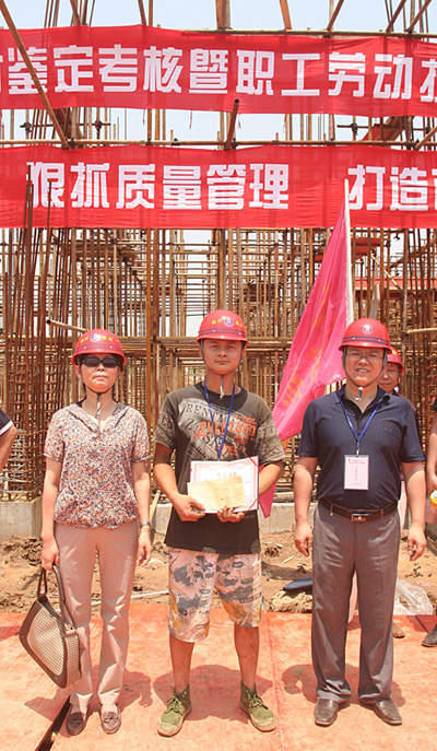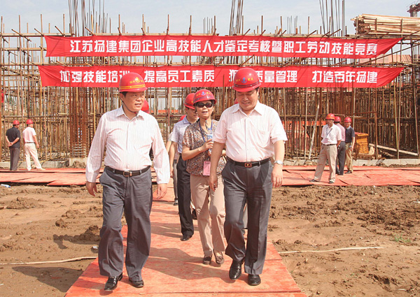 2009年6月22日至23日,集團(tuán)在揚(yáng)州市體育運(yùn)動學(xué)校遷建工程施工現(xiàn)場舉辦了“企業(yè)高技能人才鑒定考核暨職工勞動技能競賽”,揚(yáng)州市勞動和社會保障局顏軍副局長等領(lǐng)導(dǎo)和曹德榮、楊志娟、鄒厚存、張振新等集團(tuán)領(lǐng)導(dǎo)蒞臨現(xiàn)場指導(dǎo)。經(jīng)過40名選手的精心準(zhǔn)備和認(rèn)真努力,整個鑒定考核工作取得了圓滿成功。
