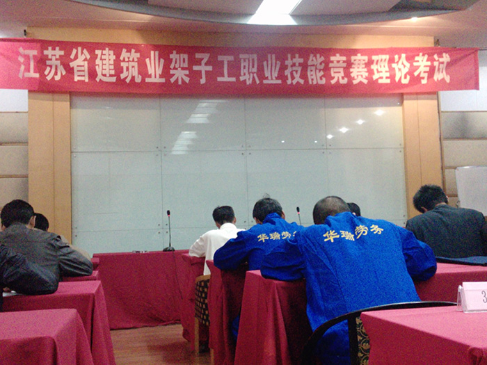 2010年11月2日,華瑞勞務(wù)公司4名腳手架搭設(shè)專業(yè)員工,代表我集團(tuán)參加了由江蘇省總工會(huì)、省建工局、省人力資源和社會(huì)保障局共同組織舉辦的江蘇省建筑業(yè)腳手架搭設(shè)技能競(jìng)賽的活動(dòng)。