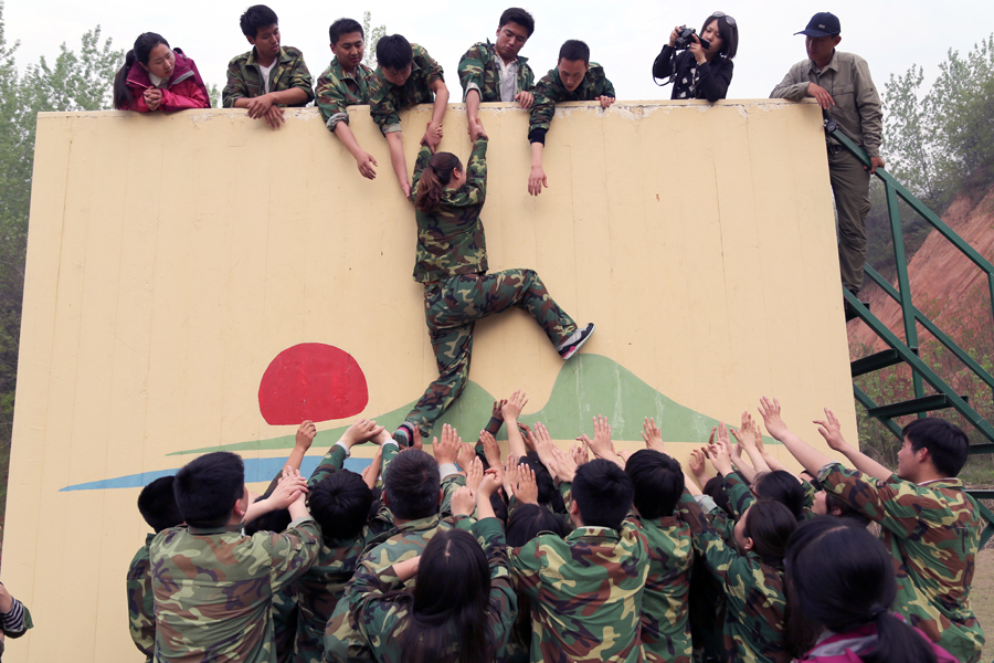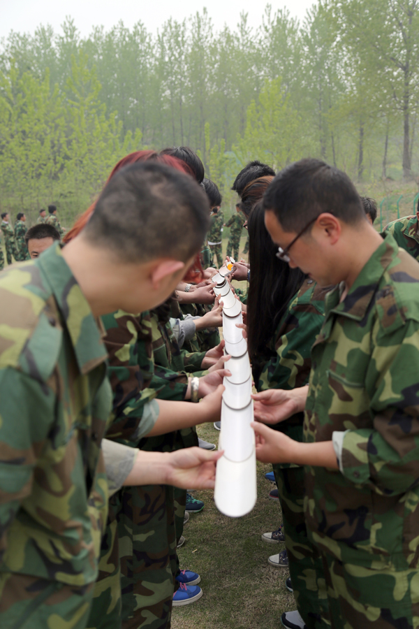 緊接著用一天的時(shí)間進(jìn)行了《瘋狂市場》、《鼓動人心》、《急速前進(jìn)》、《穿越電網(wǎng)》和《畢業(yè)墻》等項(xiàng)目,每一個(gè)項(xiàng)目都將團(tuán)隊(duì)的團(tuán)結(jié)合作、內(nèi)部溝通和集體榮譽(yù)體現(xiàn)的淋漓盡致,每一個(gè)項(xiàng)目都強(qiáng)調(diào)隊(duì)員之間的分工合作、計(jì)劃和執(zhí)行的完美結(jié)合,每一個(gè)項(xiàng)目都體現(xiàn)了個(gè)人自我與團(tuán)隊(duì)集體的適應(yīng)和再適應(yīng)的必要過程。尤其是在《畢業(yè)墻》項(xiàng)目的實(shí)施過程中,將隊(duì)員之間密切合作克服困難的團(tuán)隊(duì)精神發(fā)揮到了極致,每個(gè)人都是積極為集體榮譽(yù)而戰(zhàn),經(jīng)過大家的密切配合,41名隊(duì)友全部翻越高4.2米的畢業(yè)墻,圓滿完成拓展訓(xùn)練,體驗(yàn)到了勝利喜悅和團(tuán)隊(duì)榮譽(yù)感。