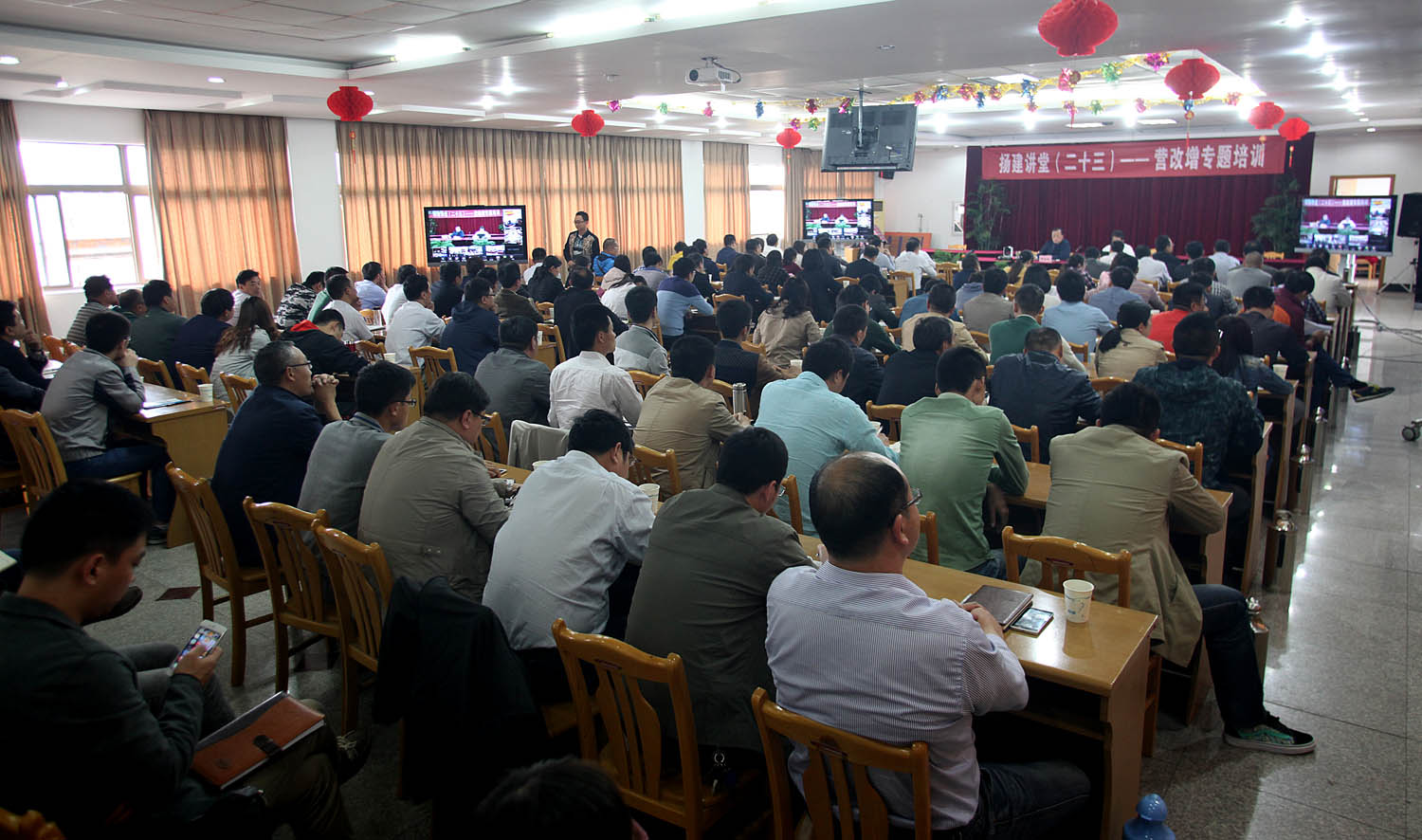 為學(xué)習(xí)“營改增”相關(guān)政策精神,提升企業(yè)經(jīng)營管理水平,集團(tuán)于5月7日舉辦了第二十三期揚(yáng)建講堂——營改增政策解讀專題培訓(xùn)。為提高效率、節(jié)約成本、信息共享、互動交流,培訓(xùn)首次采用了信息化視頻會議模式,集團(tuán)總部、文昌會議室、華發(fā)、外埠公司等共八個會場同步進(jìn)行培訓(xùn),集團(tuán)有關(guān)領(lǐng)導(dǎo)、各單位經(jīng)營班子成員、項(xiàng)目經(jīng)理、業(yè)務(wù)部門專業(yè)崗位人員等逾400人參加了本次培訓(xùn)。